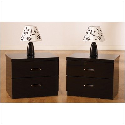 Boston Two Drawer Bedside Table in Black Gloss Colour: Black Gloss
