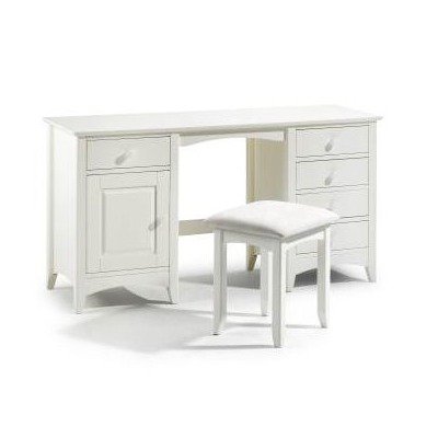 CAM008/2 Dressing table only - stool sold separately The Cameo range is a modern twist on the old Shaker style of furniture. As a result, we have created a truly beautiful white painted bedroom range with a feminine look and feel. Cameo is perfectly suited to our Barcelona bed in stone white finish. Features: -Twin pedestal dressing table. -Stone white (off-white) lacquered finish. -Material: wood. -Cameo range. -Ships flat-packed: assembly required.