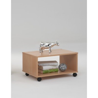 601-001-TOM-white Finish: White Shown in Beech Features: -Bedside table. -Available in beech, plum tree or white finish. -Melamine covered surface construction. -Swivel wheels.