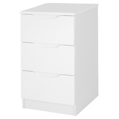 ALPB3 Features: -Three drawer bedside table.-Visualise Range.-Material: MDF / MFC.-Metal runners throughout.-Solid drawer base.-Fully assembled. Color/Finish: -Finish: High Gloss White.