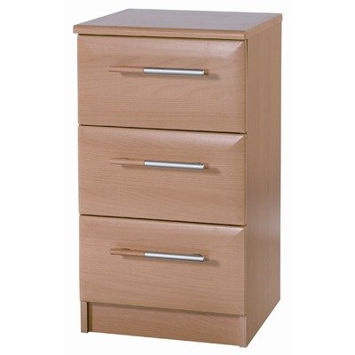 AB3 Features: -Three drawer bedside table.-Visualise Range.-Material: MDF / MFC.-Metal runners.-Designer handles.-Solid drawer base.-Fully assembled. Color/Finish: -Finish: Light Tyrolean Beech.