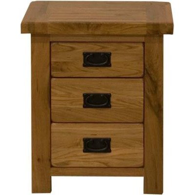 RUS3BS Features: -Three drawer bedside table. -Rustic Oak Range. -Oil finish. -Solid oak construction. -Three drawers.