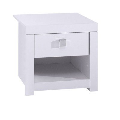 2297RK24 Features: -Bedside chest. -Palermo range. -High gloss white finish. -Chipboard construction. -One drawer. -Metal drawer runners. -Metal handles. -Easy home assembly. -Assembly required.